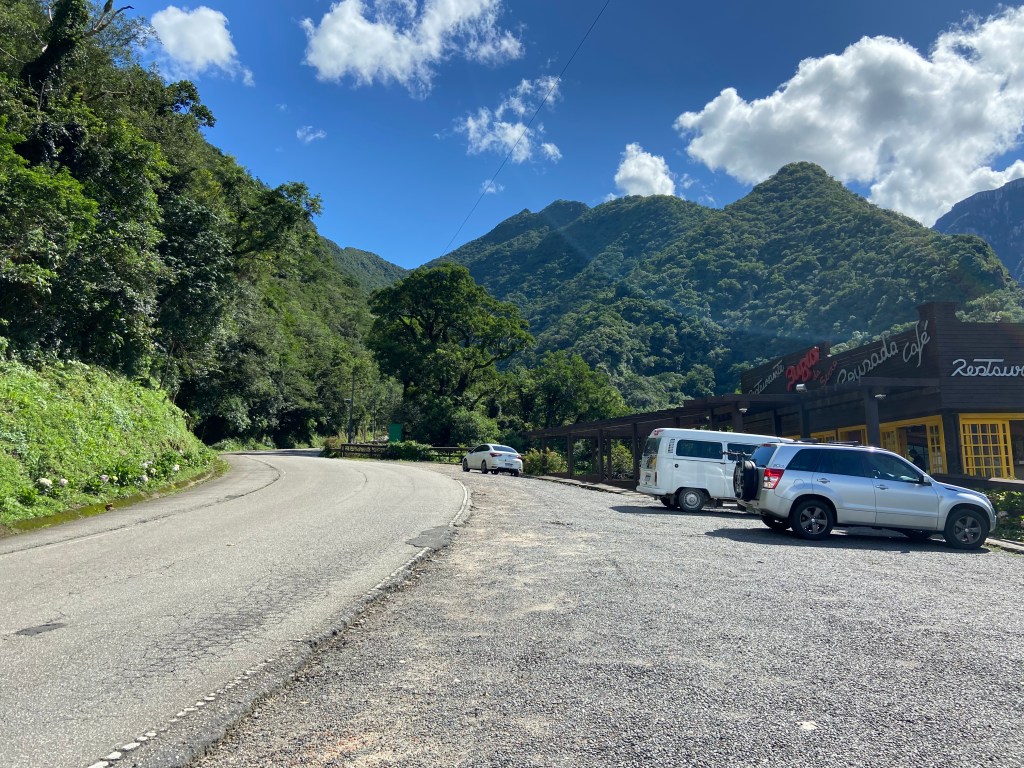 O último quilômetro da serra, não tem tanta inclinação mais, é praticamente um plano que vai chegar até o mirante, onde se termina todos os 15km da subida oficial e os 25km percorridos de Lauro Muller até aqui.