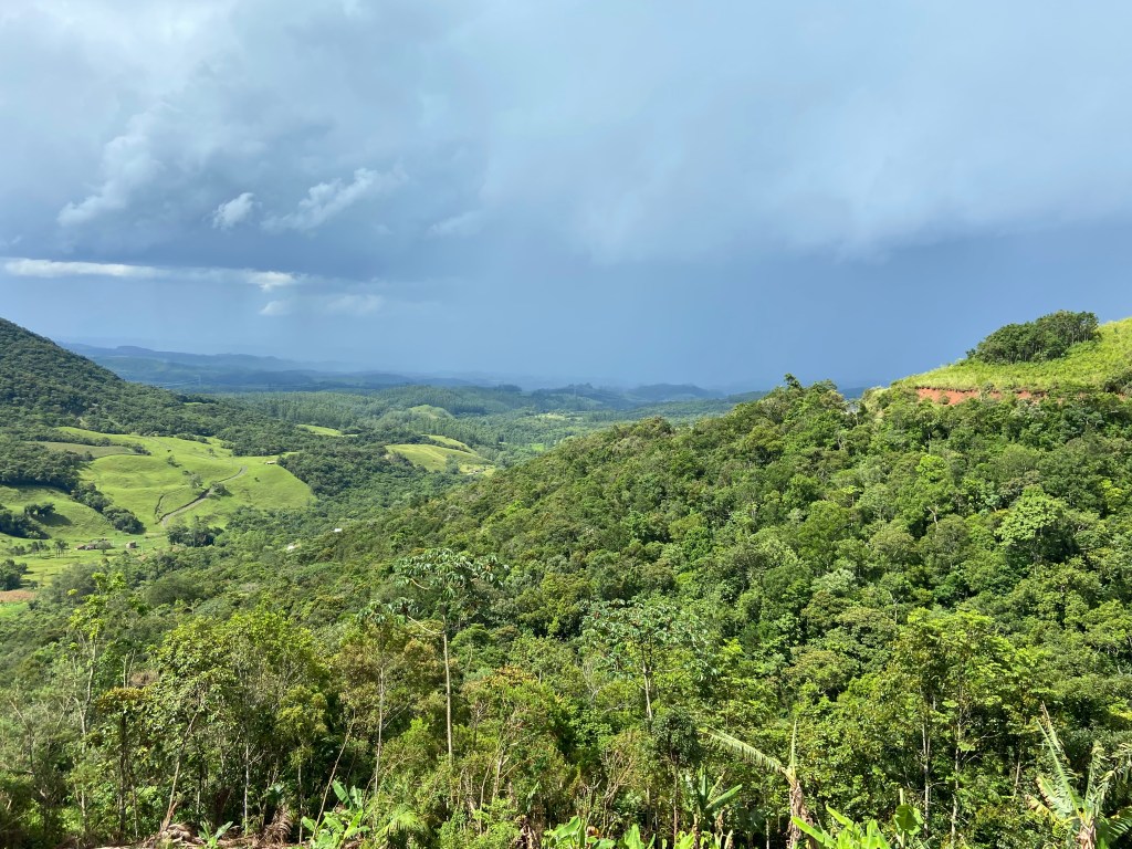 Os primeiros kilômetros não são tão desafiadores, entre 2% e 3% de inclinação média. E já é possível como todo o decorrer o percurso desde Lauro Muller já ir avistando a serra se aproximando.